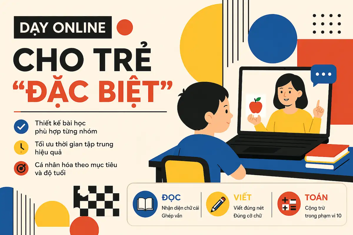 Khám phá cách thiết kế bài dạy online cho trẻ đặc biệt: từ cấu trúc bài học, thời gian tập trung đến phương pháp cá nhân hóa theo từng độ tuổi.