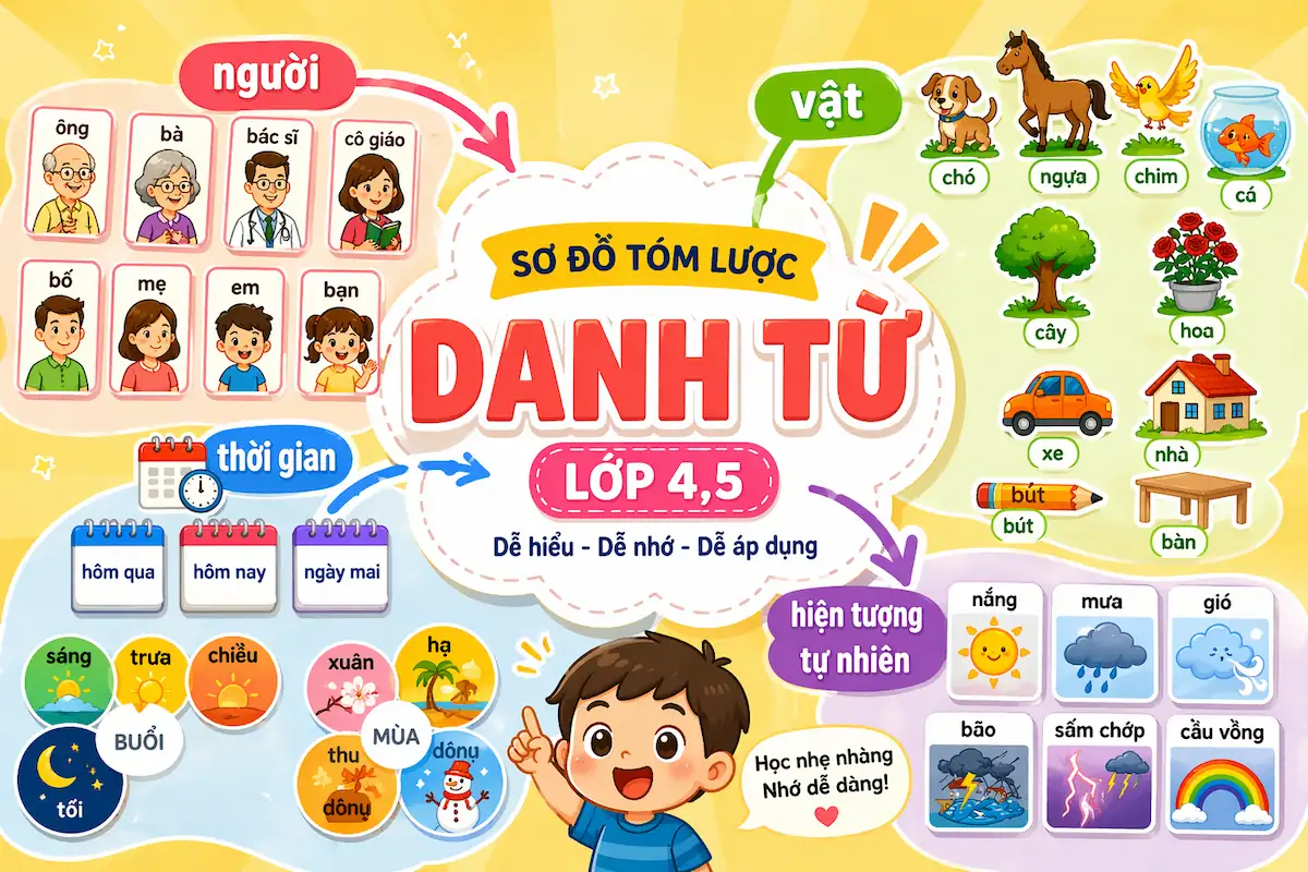 Tài liệu sơ đồ từ loại tiểu học giúp học sinh lớp 2–5 ôn tập hiệu quả, dễ hiểu và dễ ghi nhớ trong giai đoạn thi cử.